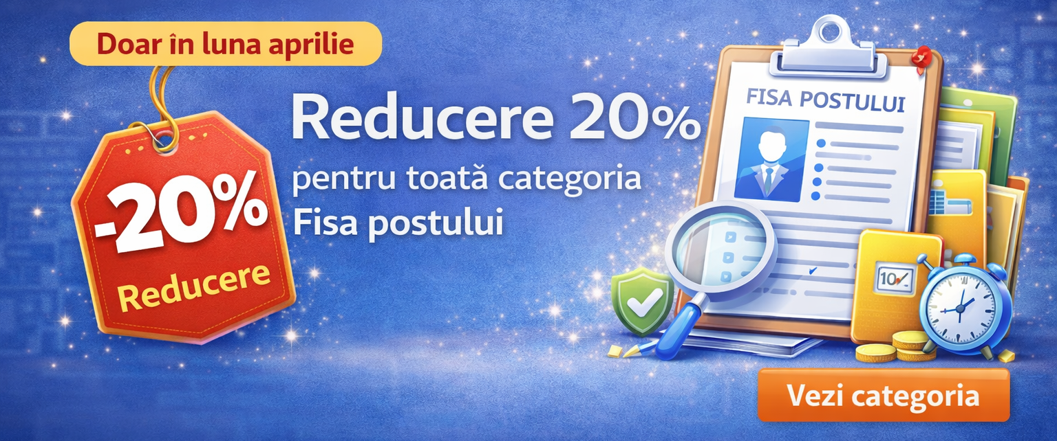 În această categorie găsești modele de fișe de post create conform legislației în vigoare, ușor de completat și adaptabile pentru diverse funcții și domenii de activitate.